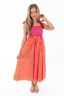This striped midi is bringing all the playful charm with its flirty silhouette and eye-catching color combo. The scalloped neckline adds a sweet, feminine touch, while the flowy skirt keeps things breezy and fun. Just add sandals and a sunny attitude for an instantly feel-good look.